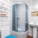 A szobákban továbbá szőnyeg padló van. A fürdőszoba felszerelései között szerepel a külön WC és zuhanyzó.